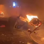 Los autos estacionados en el área al aire libre están atacados. La masa lo quemó para dejar solo un marco negro ahumado. El aroma de la combustión de plástico ha picado la nariz de cualquier persona en la ubicación.